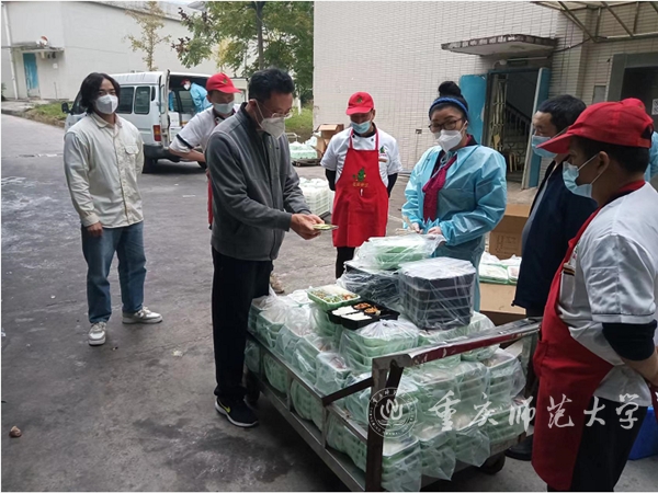 學(xué)校自11月21日疫情發(fā)生以來,迅速啟動防疫應(yīng)急預(yù)案。其中,25000余名在校學(xué)生的用餐保供成為了學(xué)校最大的牽掛。學(xué)校成立由后資處、學(xué)生處、團(tuán)委、組織部、人事處等職能部門負(fù)責(zé)人組成的學(xué)生用餐保供工作組;全體在校領(lǐng)導(dǎo)干部、教師黨員積極響應(yīng)號召,主動深入一線承擔(dān)送餐志愿服務(wù);學(xué)校領(lǐng)導(dǎo)時刻關(guān)心關(guān)注學(xué)生用餐保供情況。