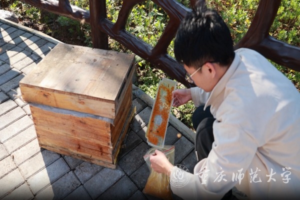 黃敦元團隊主要從事油茶傳粉昆蟲的保護與利用等方面的研究。團隊依托農業農村部長江上游傳粉昆蟲資源保護與利用重點實驗室等省部級科研平臺,研發蜂機協同油茶輔助授粉技術,主要通過油茶花期放養中華蜜蜂為油茶授粉的同時收集中華蜜蜂攜巢花粉,并通過無人機噴施液體花粉輔助油茶授粉,前期在重慶、江西、湖南等地的區域化實驗結果顯示該技術可以提高12%-25%的油茶座果率。