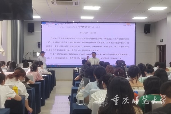 9月15日,文學院“精是講堂”邀請到浙江大學文學院方一新教授,作題為“中古俗詞語在佛經中的創新和發展”的學術講座。文學院2022級文字學、語言學及應用語言學、古典文獻學、古代文學、現當代文學、文藝學以及學科語文專業研究生參加講座,文學院雷冬平教授主持講座。
