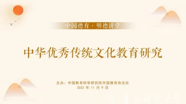 11月9日,以“中華優秀傳統文化教育研究”主題的“中國德育·明德講堂”第18正式開講,我校教育科學學院冉亞輝教授應邀作題為“新時代德育要講好中華傳統文化故事”的主題講座。“中國德育·明德講堂”系中國教育科學研究院《中國德育》雜志社主辦的系列學術講座,是國內德育領域具有重要影響力的學術論壇。